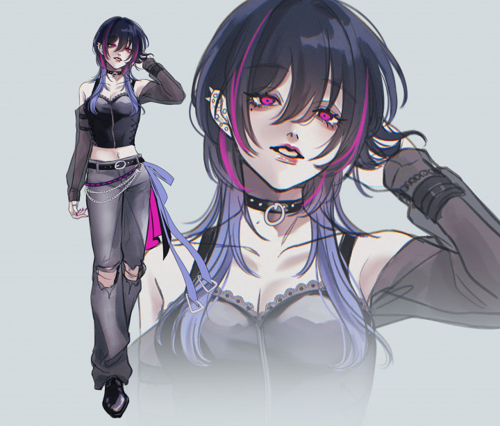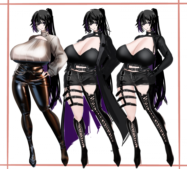 【髪型】パッツン前髪、ストレートロング、腰まで 【髪色】黒...