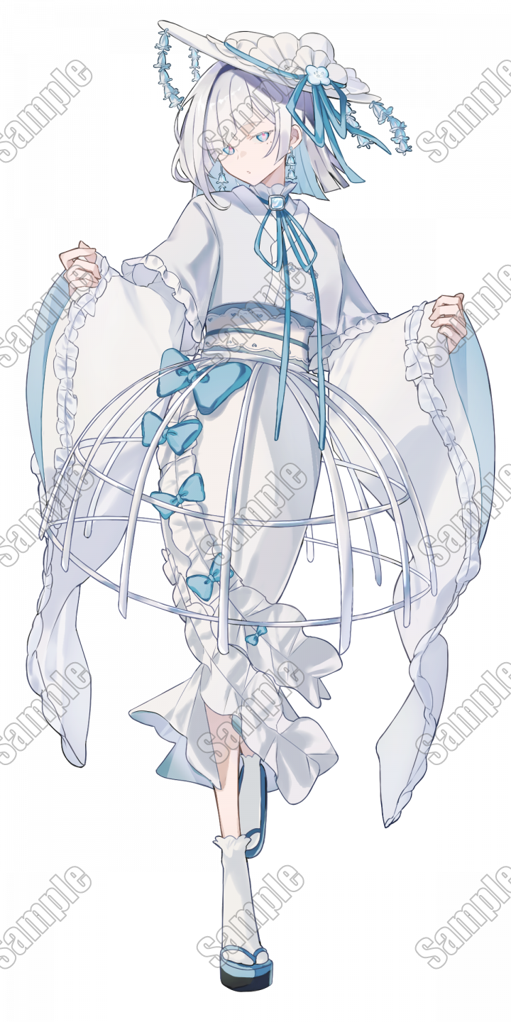 白をメインとした和風寄りなデザインの全身立ち絵です!