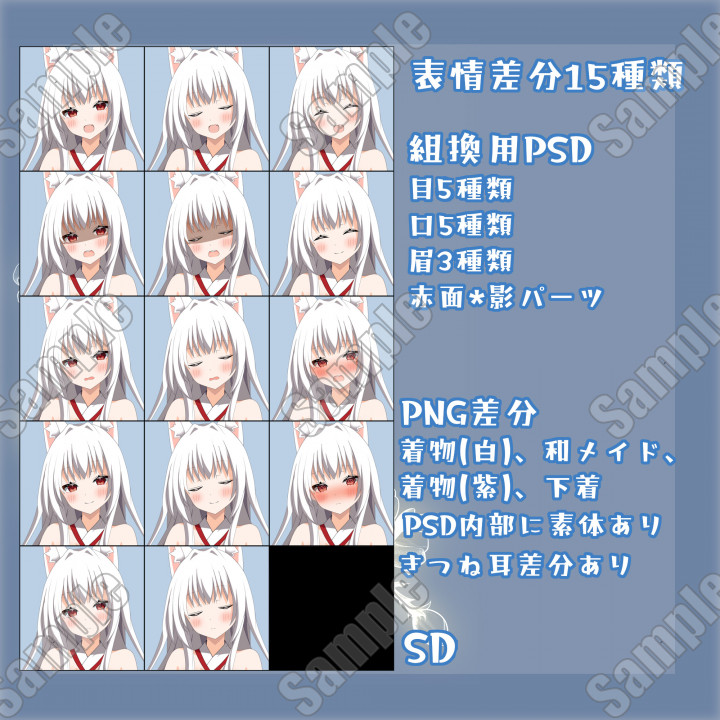 差分:表情差分14種×服装4種(PNG)×狐耳差分