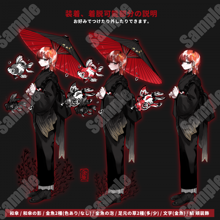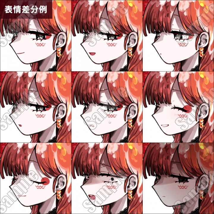 ・出品ページ見本画像(表情差分見本/表情差分各パーツ早見表/SD見本/全身図差分見本)