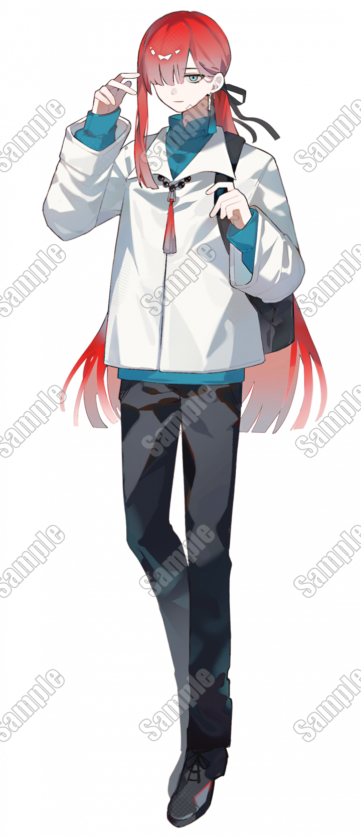 検索用:キャラ販売/立ち絵販売/adopt/男性/赤毛/長髪/ローポニーテール/目隠れ |