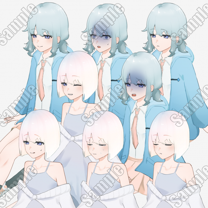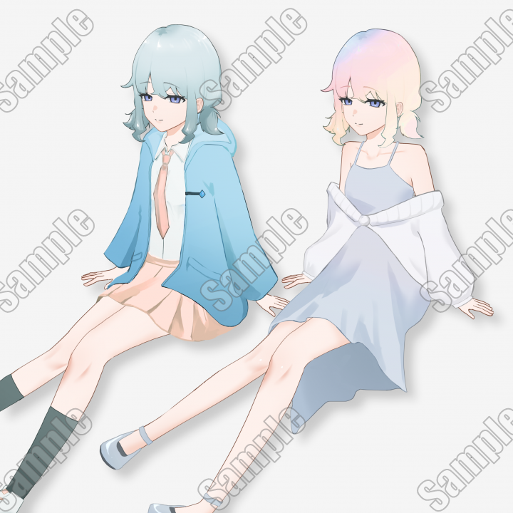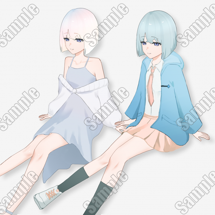 女の子が2人再現できるお得な立ち絵パックとなります。サムネ以外にも表情差分があります。
