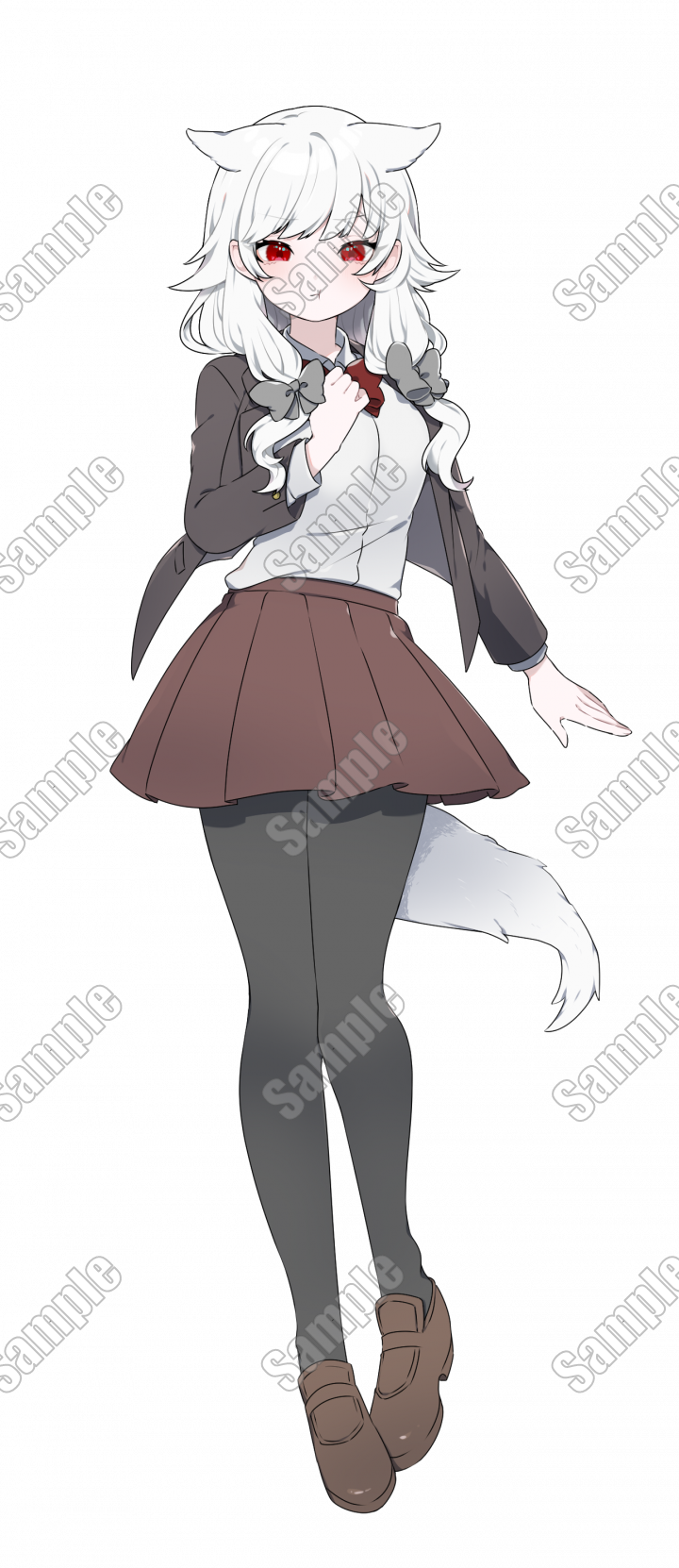 獣人/フード/ケープ/少女/制服/獣耳/尻尾/赤白