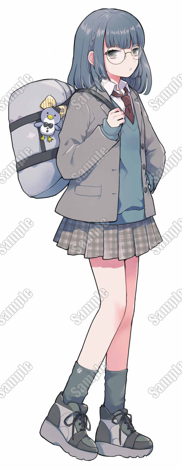 全身立ち絵+表情5種+メガネ差分のセットになります。