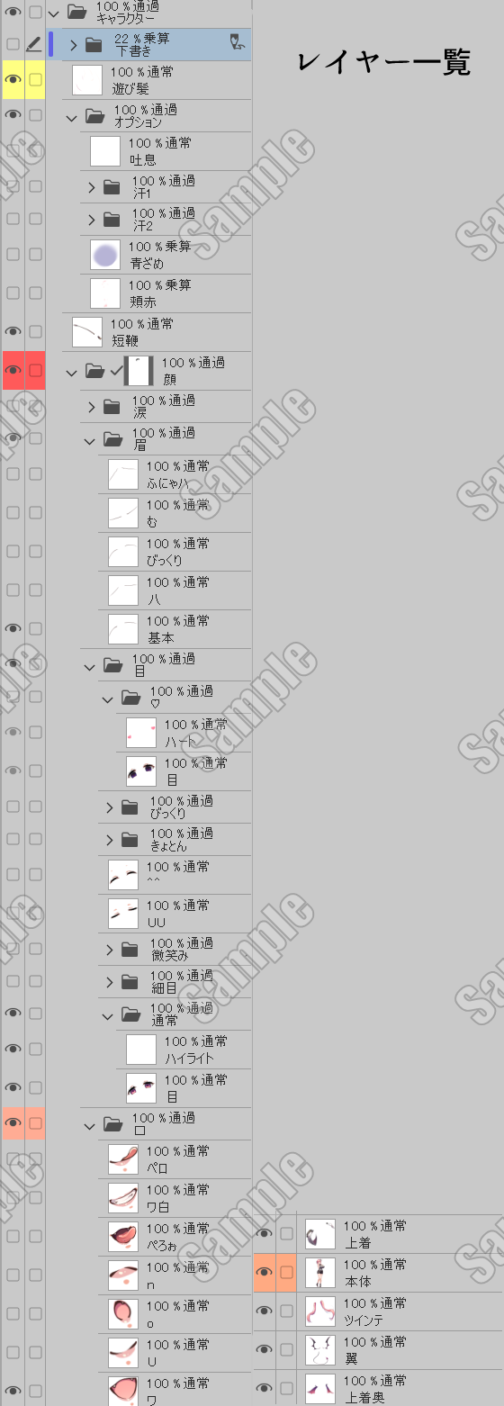 💬差分一覧(PSD内レイヤー)