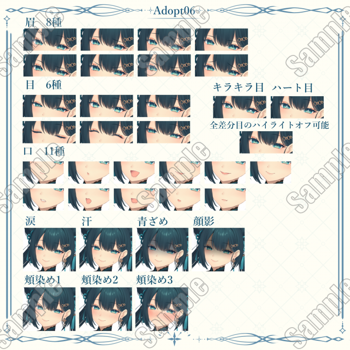 表情差分は1つ500円で追加可能ですのでご希望でしたらご相談ください。