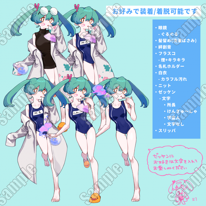 ・出品ページ見本画像(表情差分見本/表情差分各パーツ早見表/着脱パーツ説明表)