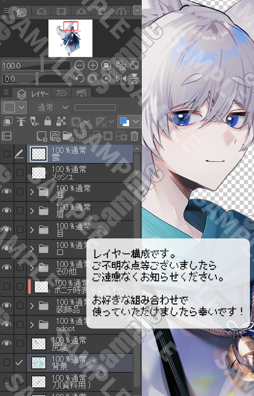■こちらのadoptはpsdデータでのお渡しです。納品物に不備や、レイヤー構成についてなど、ご不明な点ございましたらご遠慮なくご連絡ください。 |