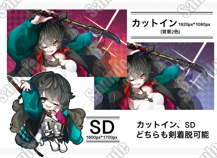 ・PSDデータ: 眉7種、目13種、口15種、顔色3種、汗2種、付属品:剣