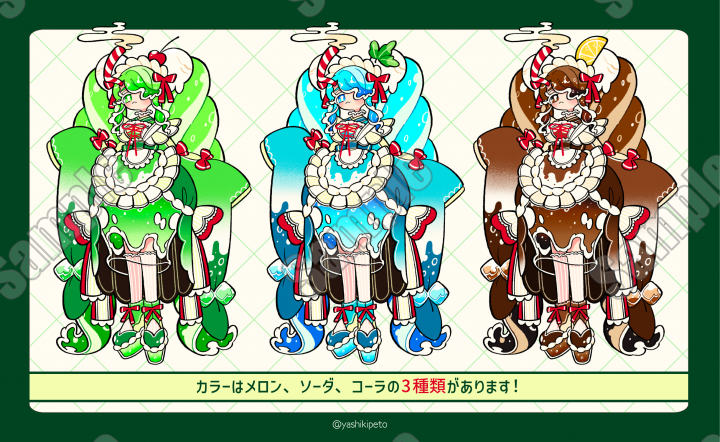 ・統合済みPNG:15種(メイドクリームソーダ12種 / マスコット3種)