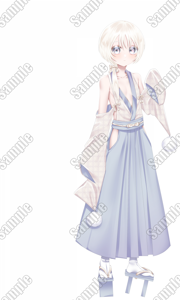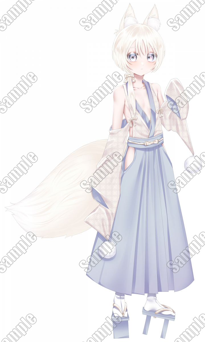 白髪和装くん【表情10種】ケモ耳、尻尾付き