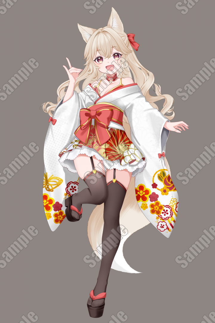ミニスカ和服のケモミミ少女
