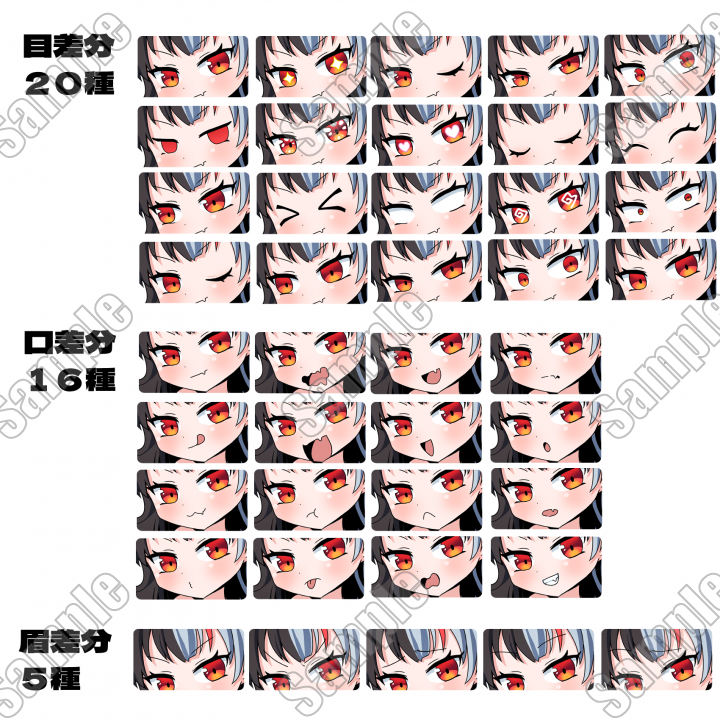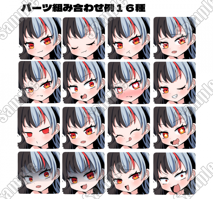 ・付属のPSDファイルは、Photoshop・クリップスタジオなどの画像編集ソフトや、PSDToolなどを使用して表情の組み換えが可能です。