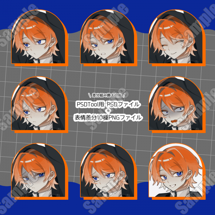 表情差分10種類(フード着脱可能)+差分生成用psd