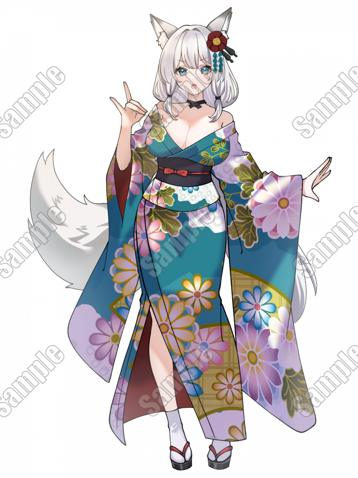 和服白狐の女の子【表情全5種】