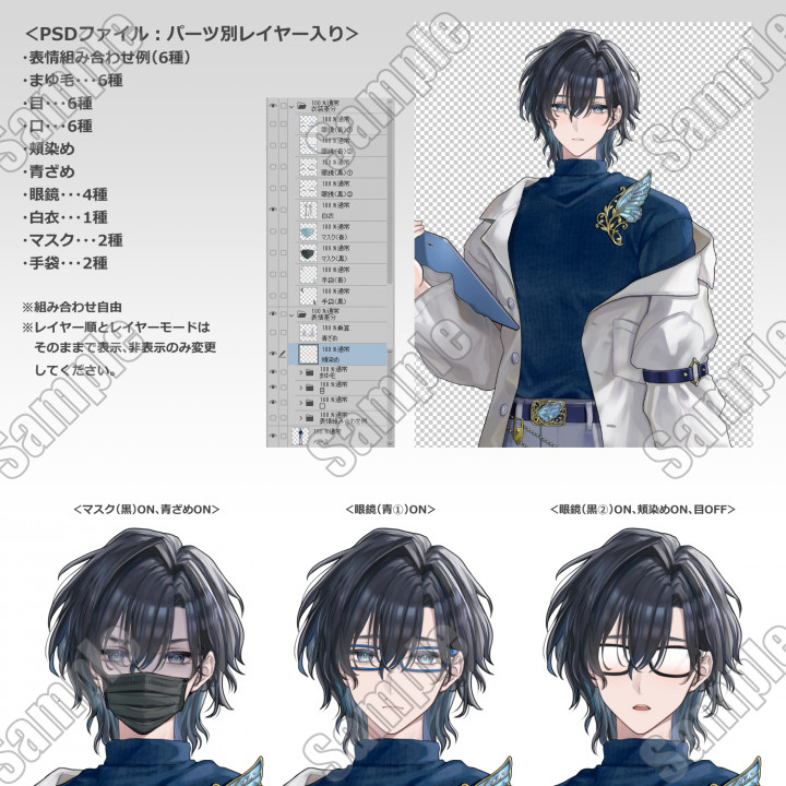 ・衣装差分のPNG(白衣、眼鏡4種、マスク2種、手袋2種)