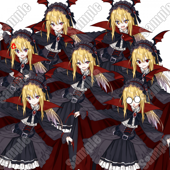 ・武器、装飾等小物はデザイン用素材としてストックしており、他の立ち絵で既に使用したことがある、これから使用する場合がございます。
