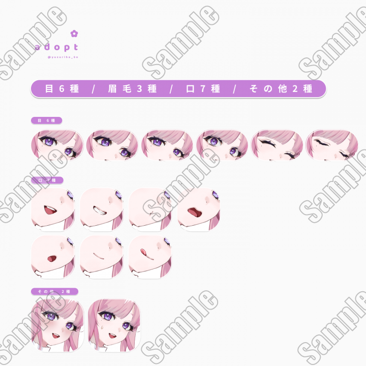 ∟ 目6種 / 眉毛3種 / 口7種 / その他2種
