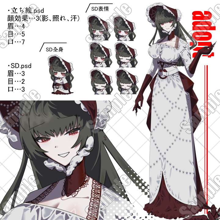 | 内容 | PSDファイル形式のキャラクター全身立ち絵&SDアイコンセットです。 |
