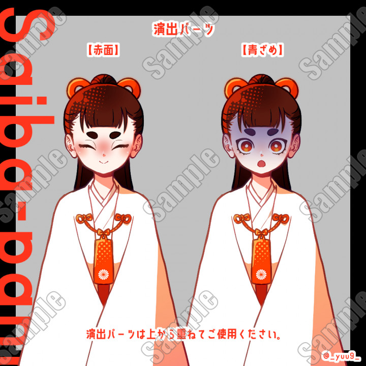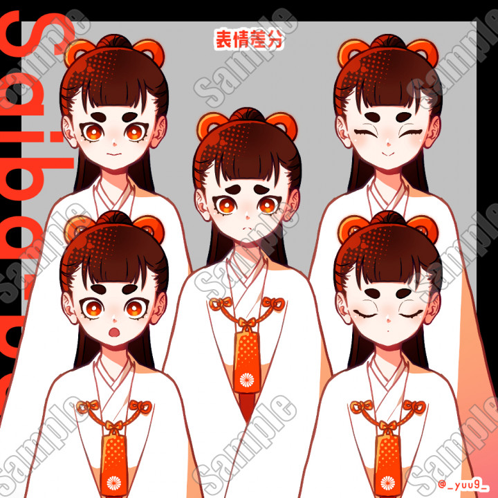 【立ち絵素材】サイバーパンク風巫女【表情5種】