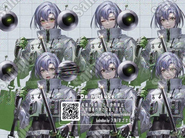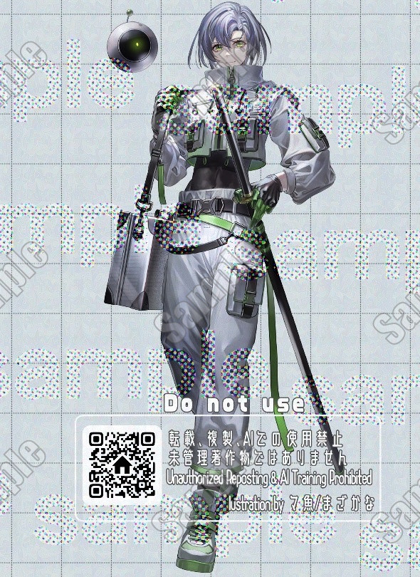 刀を携えたサイバーファッションの男性 IRIAM用に編集可能