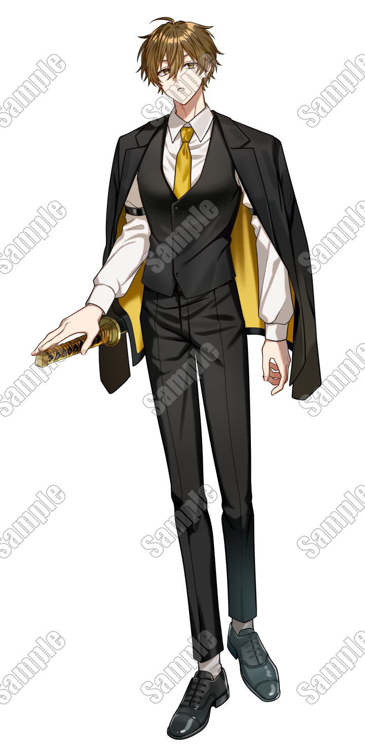 【表情6種】帯刀したスーツの男性