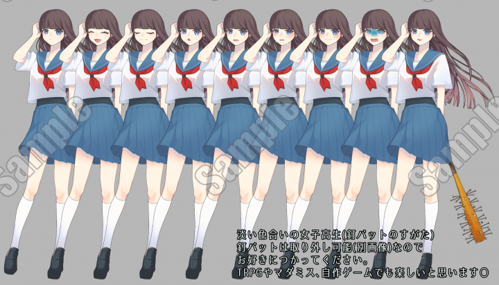 清楚系釘バット少女【表情差分9種】
