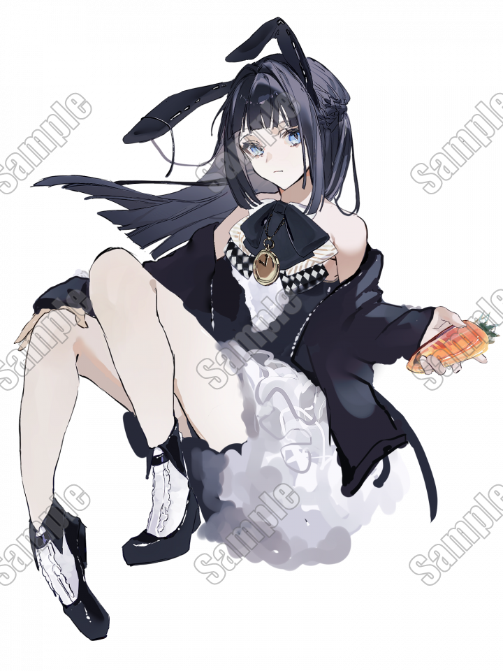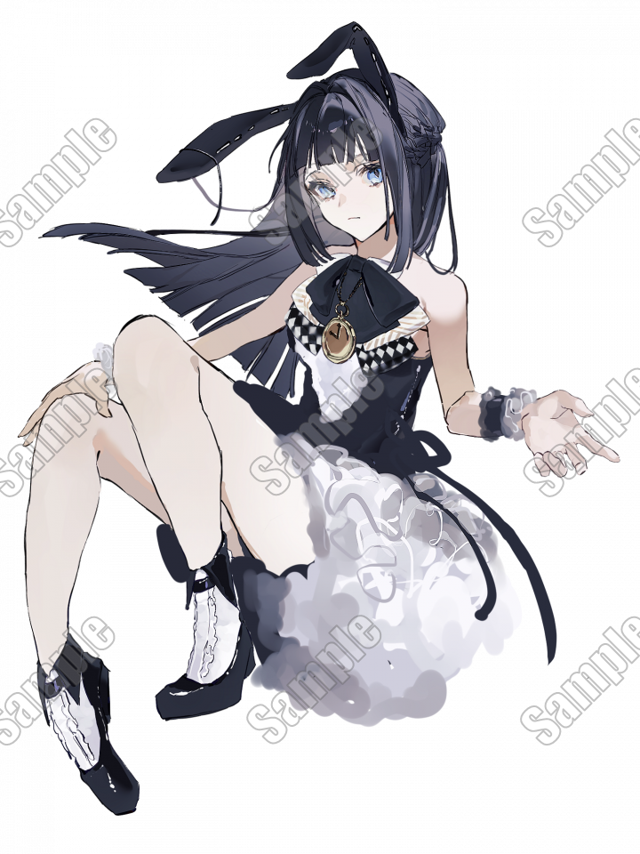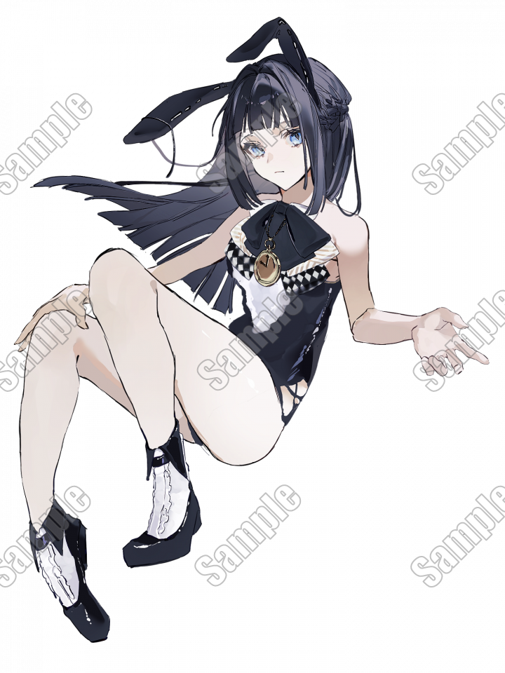 👯♀️⬛️️🩵黒髪水色眼バニー服女子