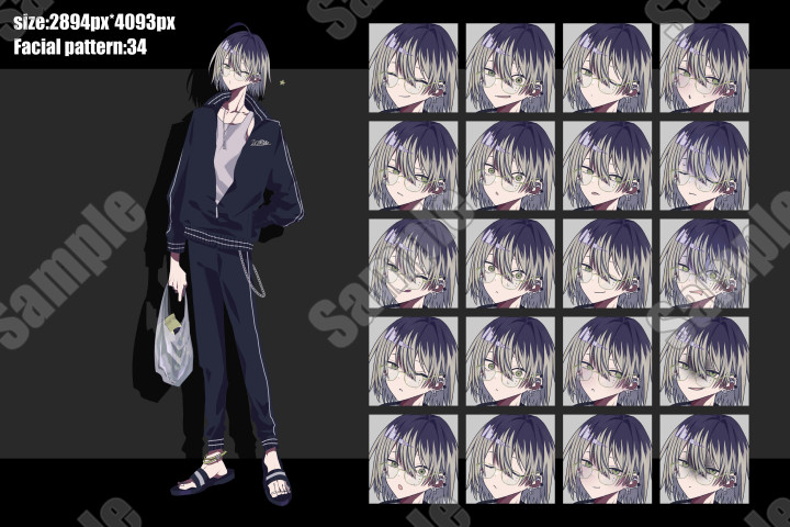 《眼鏡差分付き》|表情34種|商用可