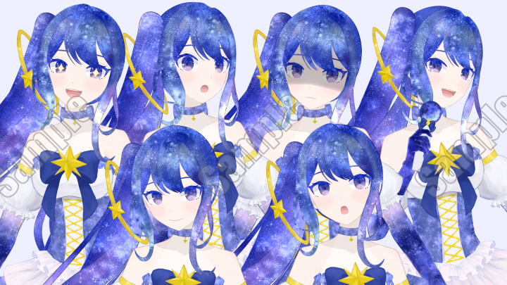 | 内容 | 宇宙モチーフの女の子モデルです。色々なところに銀河や星の要素を詰め込みました! |