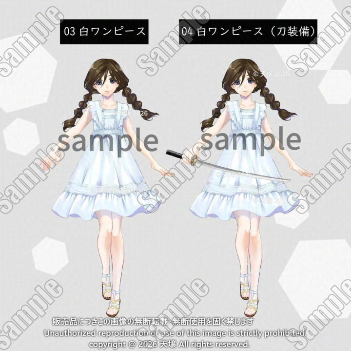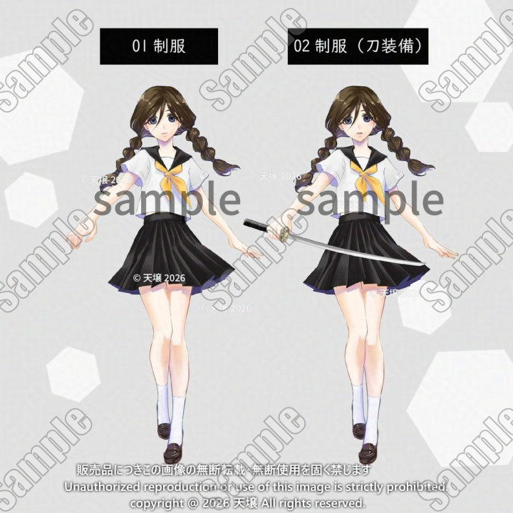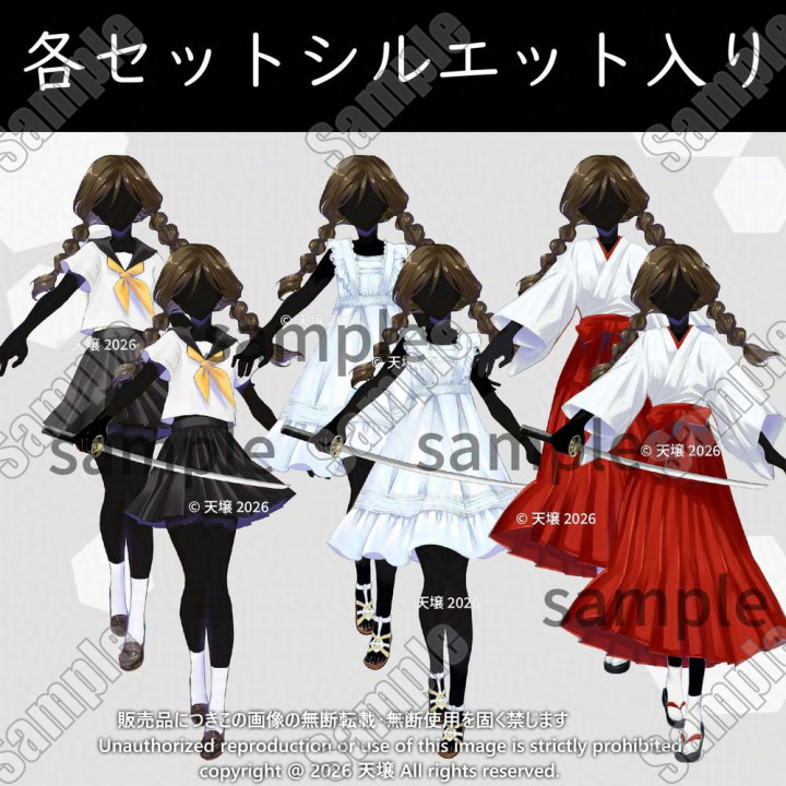 立ち絵全身_少女_女子高生_セーラー服_白ワンピ_巫女服_刀