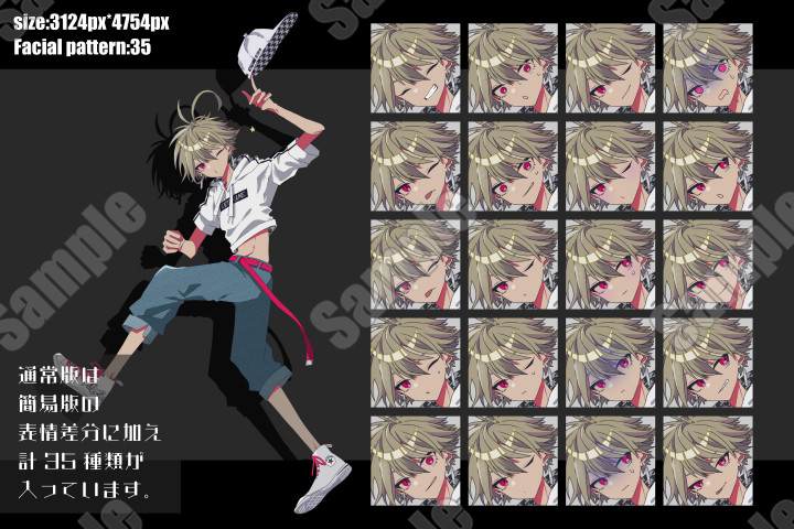 | 内容 | キャップを持った活発そうな少年【金髪赤眼/日焼け肌】 立ち絵素材です。 |
