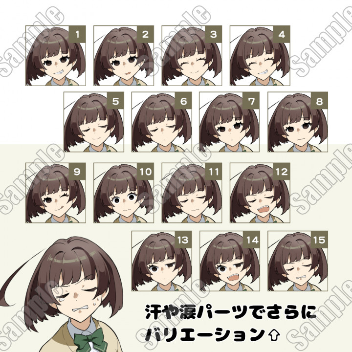 TRPG、定期ゲーム向け学生立ち絵(表情15種/持ち物3種)