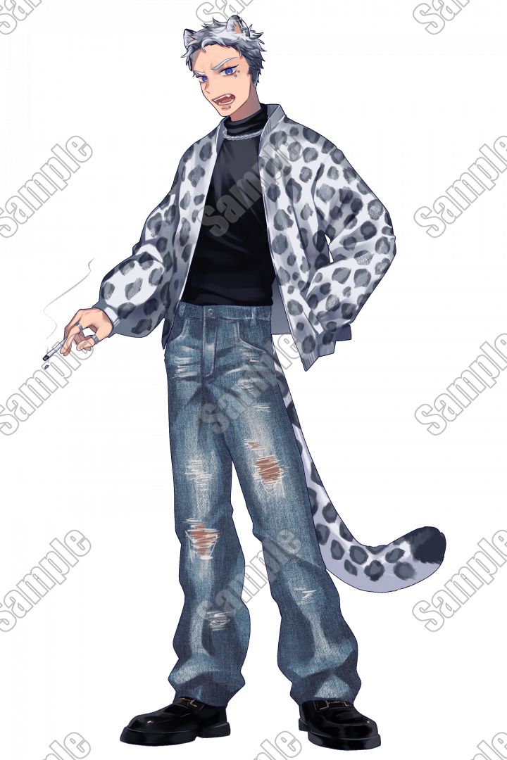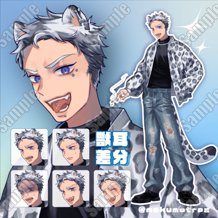 【表情5種/獣耳差分あり】ピアスの白髪男性