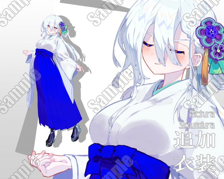 【立ち絵素材】白髪金眼の女性 追加差分 袴・軍服セット