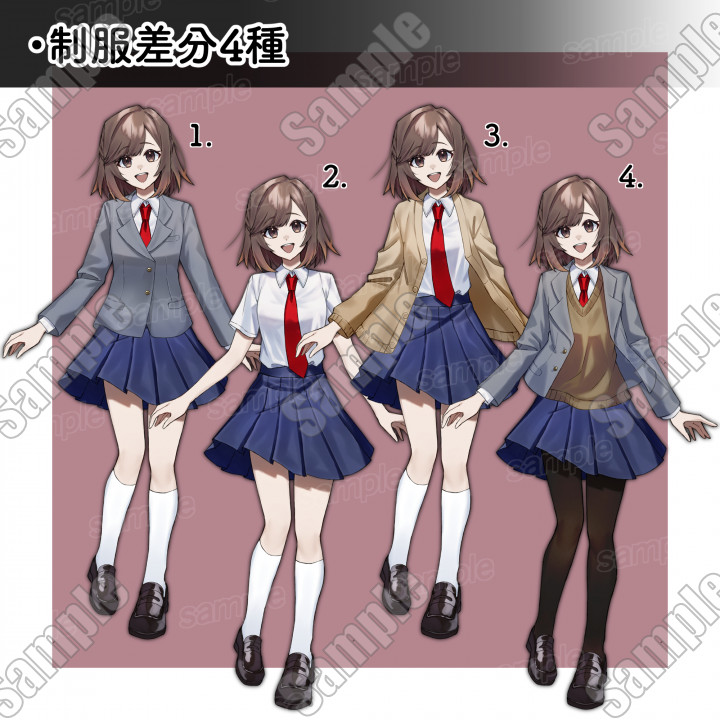 | 内容 | 女子高生の立ち絵素材です。 |