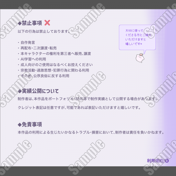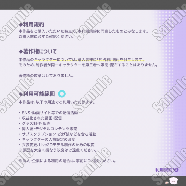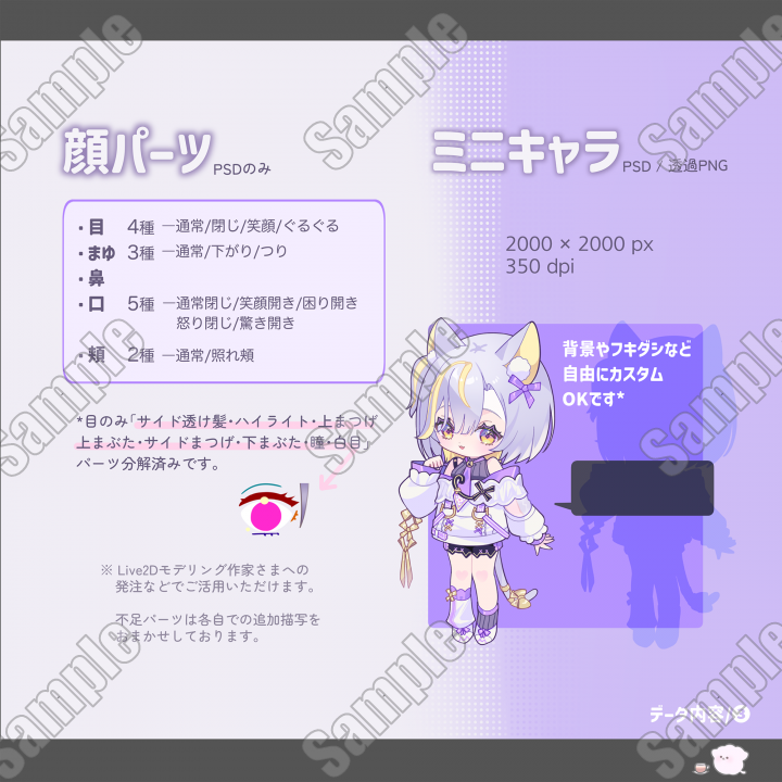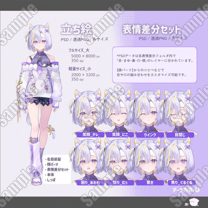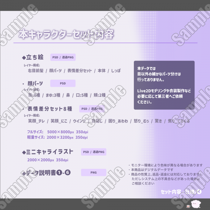 | 内容 | ■高解像度PSD / 透過PNG形式の立ち絵データです。 |