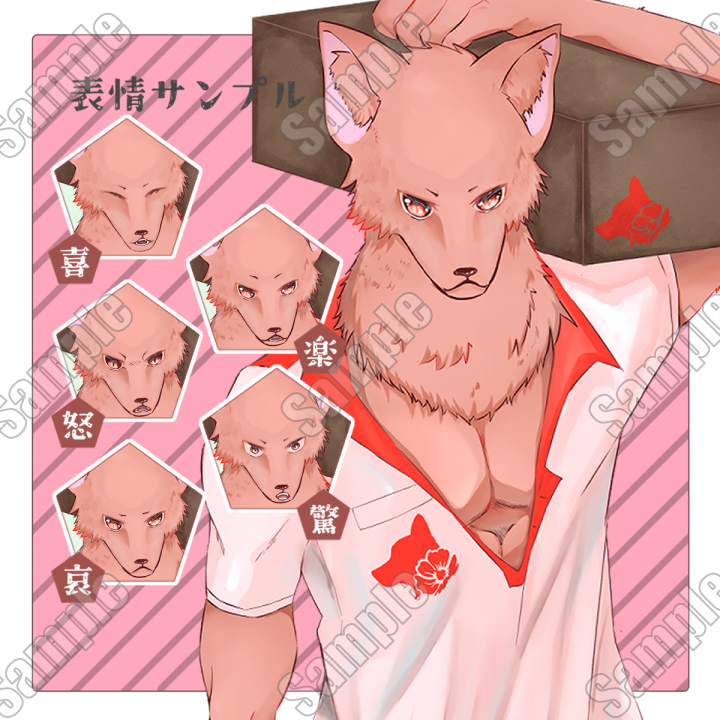 立ち絵素材_オオカミ獣人の配達員の男性【表情差分11種】