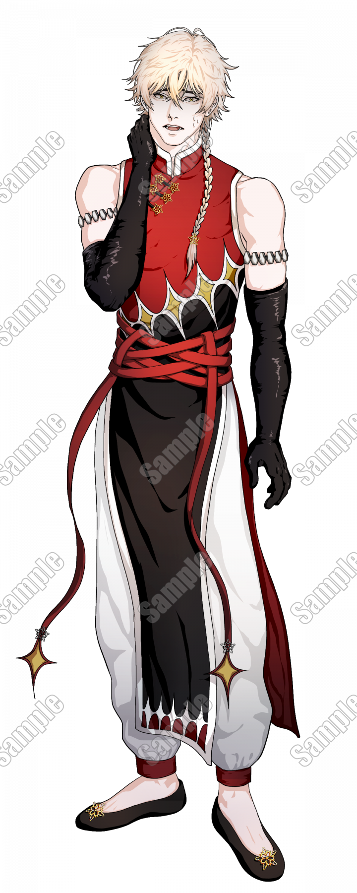 中華服を着た三つ編みの男性