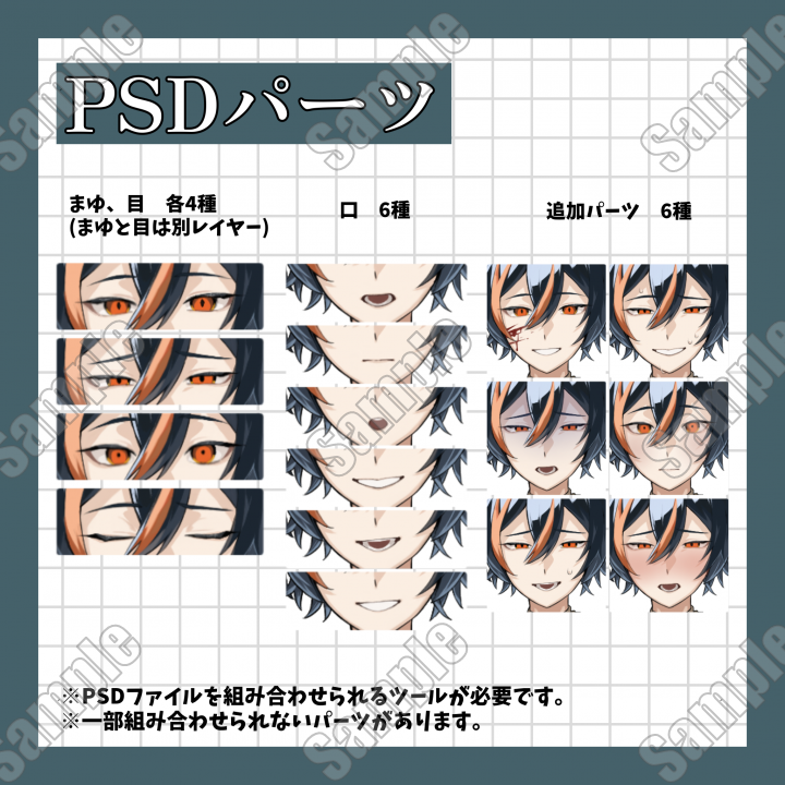 | 購入者へのお願い | 追加の表情差分は目、まゆ、口の3つ1セットを500円より対応しています。 |