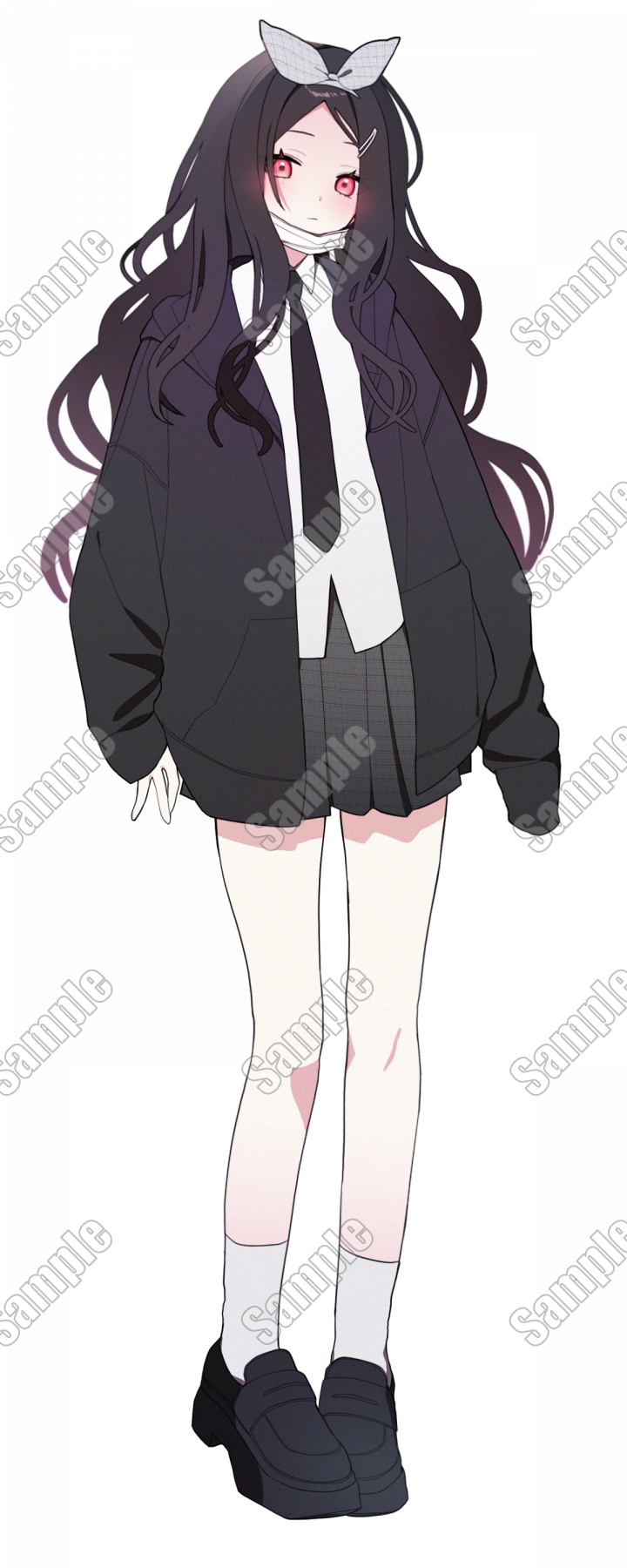全身立ち絵 リボンをつけた学生の女の子