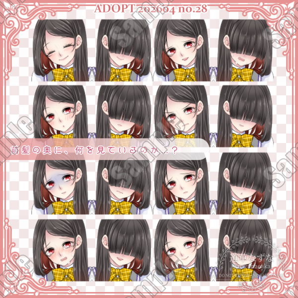メカクレ女子学生|TRPG立ち絵素材(前髪差分・表情8種)
