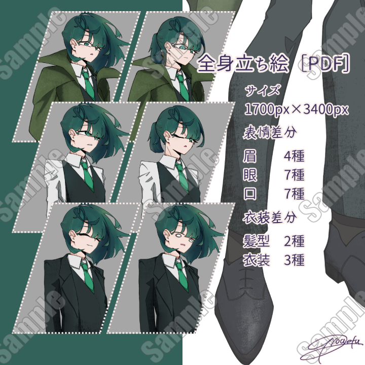 | 内容 | ジャンバー×ジャケットスーツ×ベスト×グリーン×髪結び×気だるげ×青年 |