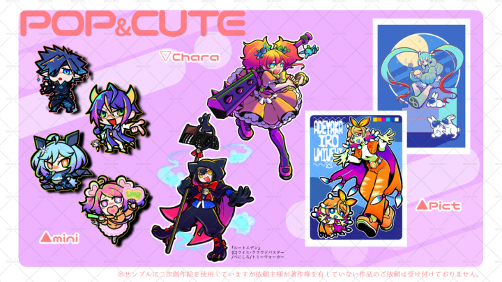 コミッション(オーダーメイド)ではない既に完成しているオリジナル商品の販売に適した出品方法です。 販売人数を一人限定や複数人など選択可能であり、納品作業も自動で行うことができます。 SNS用イラストやアイコンはもちろん、TRPG用立ち絵、Vtuber用モデル、Live2Dのモデリングデータ等様々な用途の出品に利用できます。 ※AIチェック項目がありますので必ず確認してください