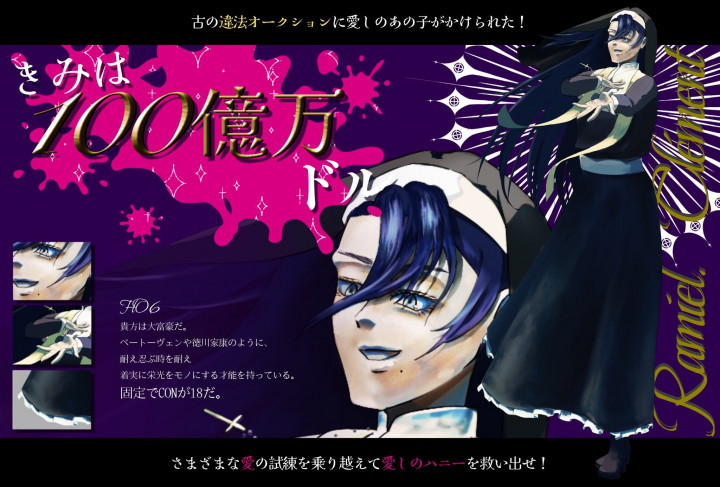 入札者が値段を付け、一番高い価格を提示した人が商品を落札します。 スタート時の価格設定以外に即決価格の設定が可能。また分単位で終了時刻を設定することもできます。 既に完成しているオリジナルの商品(イラストやLive2Dのモデリングデータ等)の出品が可能です。 著作権の有無に関わらず転売は禁止であり、著作権を自身が保有しているオリジナル商品のみ出品可能です。 ※AIチェック項目がありますので必ず確認してください