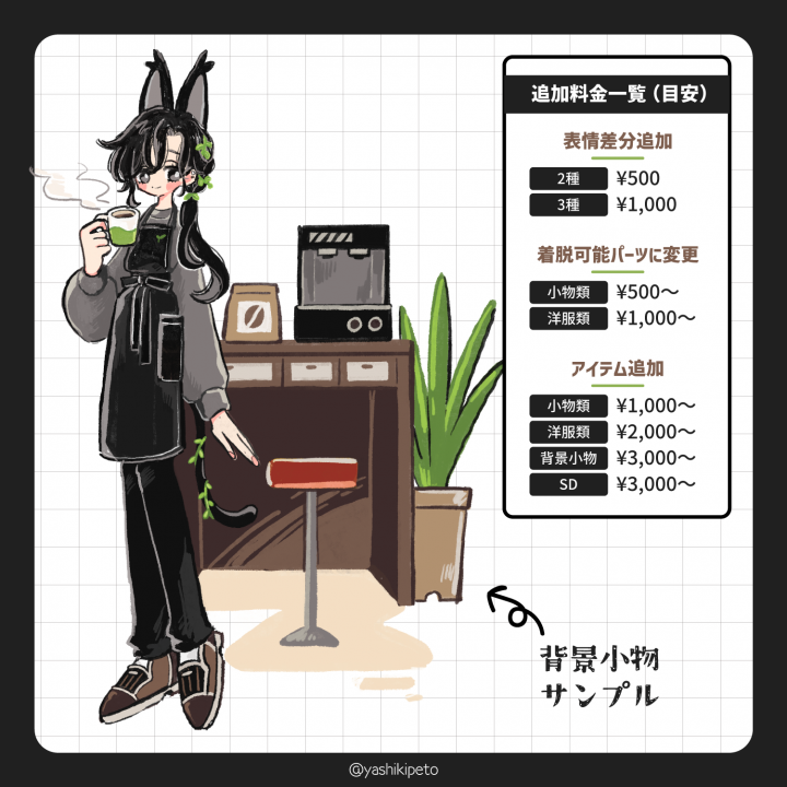 コミッション(オーダーメイド)ではない既に完成しているオリジナル商品の販売に適した出品方法です。 販売人数を一人限定や複数人など選択可能であり、納品作業も自動で行うことができます。 SNS用イラストやアイコンはもちろん、TRPG用立ち絵、Vtuber用モデル、Live2Dのモデリングデータ等様々な用途の出品に利用できます。 ※AIチェック項目がありますので必ず確認してください