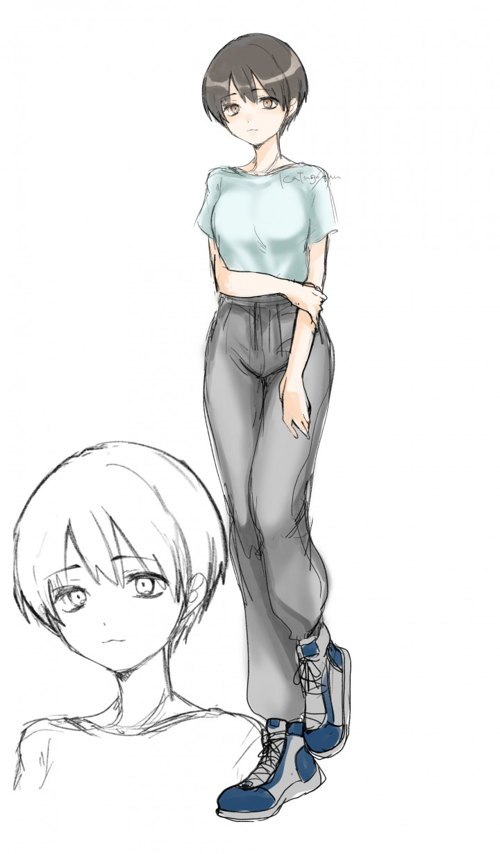 ラフ私服ショートカット女性