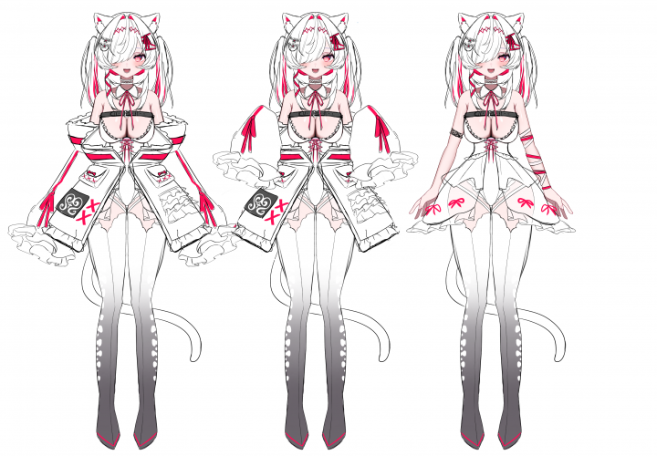 白髪を基調に、感情だけが色として滲む猫モチーフモデル。 |