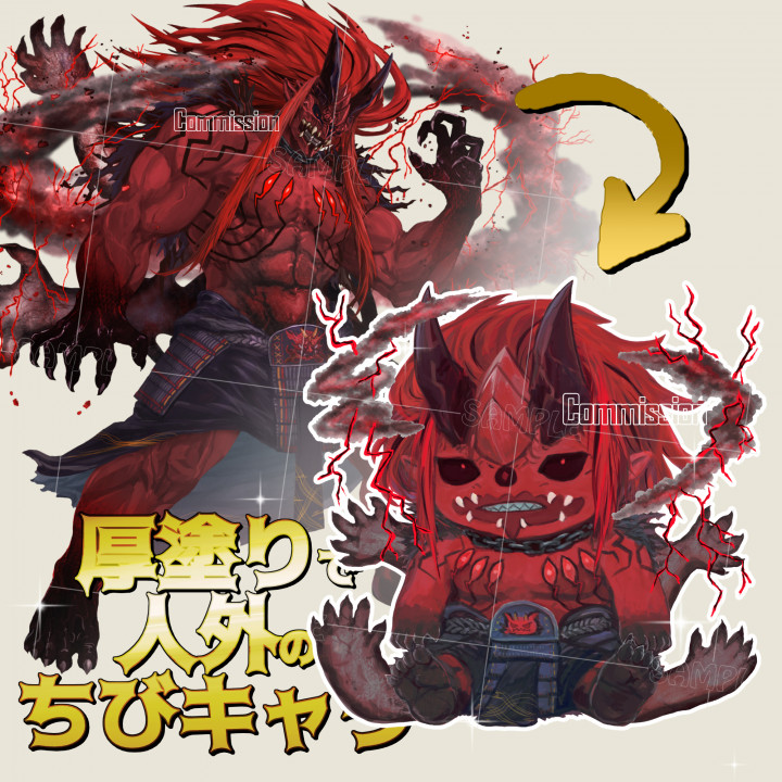 人外、異形頭キャラのちびキャラを承ります