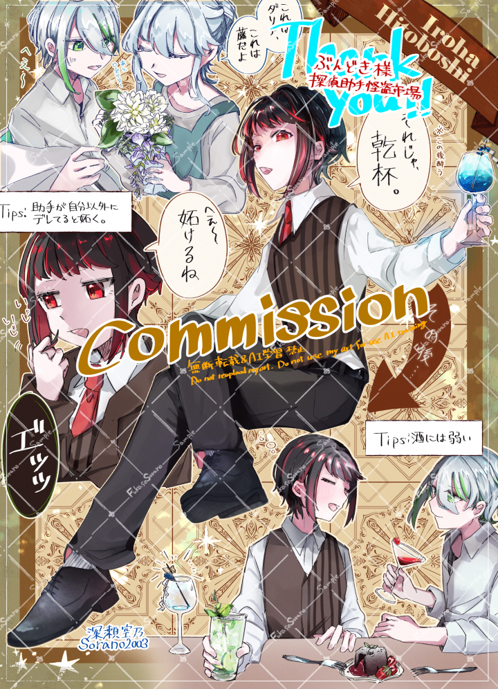 内容 | ご覧いただきありがとうございます! はじめまして、深瀬空乃です。こちらではイラスト全般のご依頼を承っております。 |